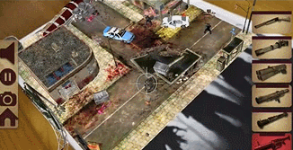 需要提醒的是,玩家把上图打印出来效果会更好,当你移动手机的时候,Table Zombies的AR模型会保持稳定,不会像Warp Runner那样会时不时显示丢失参照物。在Table Zombies里,你可以360度环绕整个场地,还可以选择贴近观察狰狞的僵尸。